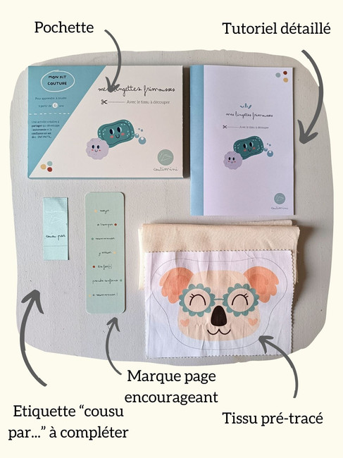 Avec ce kit, pas besoin de patron, votre enfant va simplement découper le tissu le long des pointillés, pour passer directement au plaisir de coudre ! Retrouvez le kit des lingettes frimousses ici.